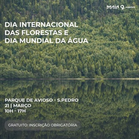 No âmbito da dinamização do Plano de Educação Ambiental do Concelho da Maia e, por solicitação da Unidade de Educação e Formação Ambiental, informa-se que, no dia 21 de março, das 10:00 às 17:00, decorre no Parque de Avioso S. Pedro a comemoração do Dia Internacional das Florestas, uma excelente oportunidade para estar em contacto com a natureza e efetuar a plantação de espécies autóctones, contribuindo para aumentar a biodiversidade deste importante espaço verde do Concelho da Maia.