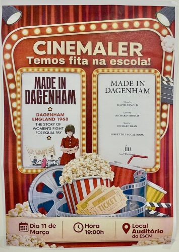 No dia 11 de março, pelas 19h00, os alunos das turmas EFA participaram numa sessão de cinema promovida pela Biblioteca da Escola Secundária do Castêlo da Maia, no âmbito do projeto CinemALer, integrada nas comemorações do Dia Internacional da Mulher. A iniciativa teve lugar no auditório do AECM e contou com a exibição do filme Made in Dagenham, inspirado na obra com o mesmo nome.
