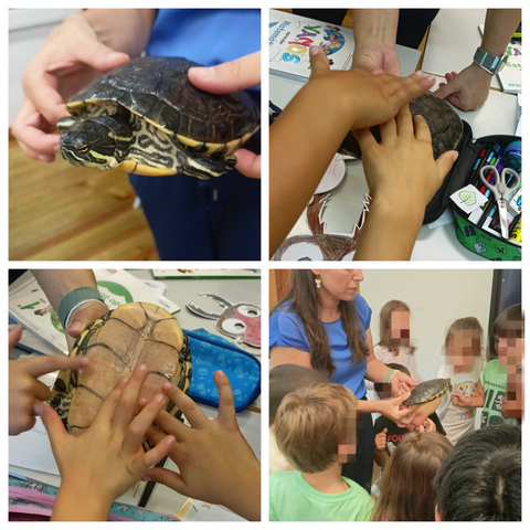 Ao longo do dia, o Flash fez-nos uma surpresa e visitou todas as salas para que as crianças pudessem conhecer de perto um cágado-de-barriga-amarela.