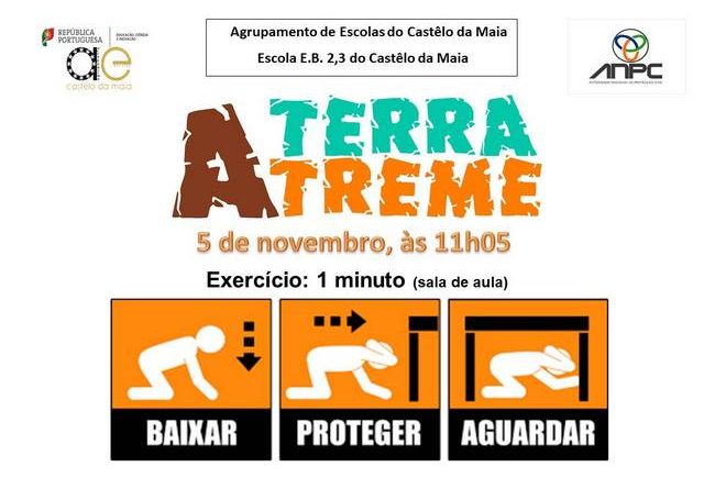 Realizou-se no passado dia 5 de novembro pelas 11.05h, na escola EB 2/3 do Castêlo da Maia, o simulacro de risco sísmico “A Terra Treme”. Todas as turmas da escola realizaram este exercício, tomando consciência da sua importância numa possível situação real.