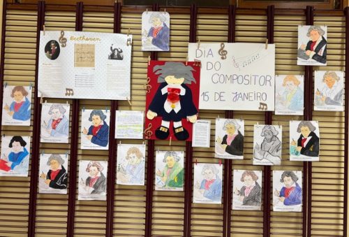 A nossa Biblioteca Escolar encheu-se de música, cor e história! Para celebrar o Dia do Compositor, os alunos do 5.º e 6.º anos aceitaram o desafio dos docentes de Educação Musical e o resultado foi… simplesmente harmonioso!