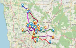 Estivemos, individualmente, a traçar os percursos casa-escola usando o GeoJSON.io. Criamos um mapa que parece um “espaguete natalício”!