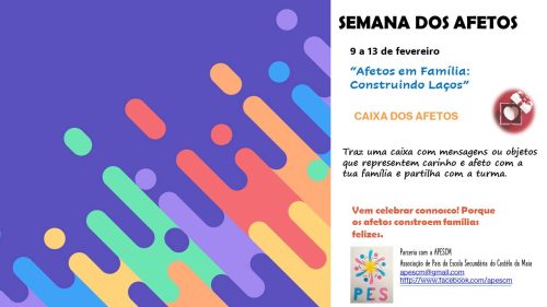 No âmbito do Projeto Educação para a Saúde (PES), na semana de 09 a 13 de fevereiro, vamos celebrar “Afetos em Família, construindo laços”.